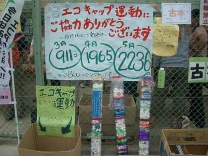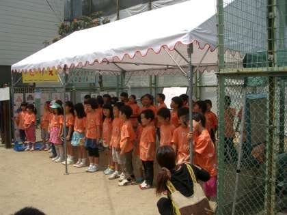 14日(日)午前10時30分から,吉田児童館で児童館まつりとバザーがありました。第四錦林小学校の子どもたち,地域の方々などたくさんの参加で盛大に行われました。児童館に在籍している第四錦林小学校の1年生〜3年生の子どもたちは,オープニングでは自分たちで作ったお揃いのオレンジ色の絞りのTシャツを来て,歌の発表をしました。バザー会場や模擬店ではたくさんの保護者の方が協力されていました。この4月から,児童館が取り組まれているエコキャップ回収運動の様子も発表されていました。これからも,児童館との連携をますます深めていきたいと思いました。