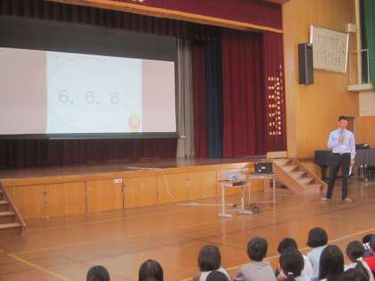 校長からは,「6.6.6」と「しきんの木」,生徒指導部からは,「6月のきまり」についての話でした。