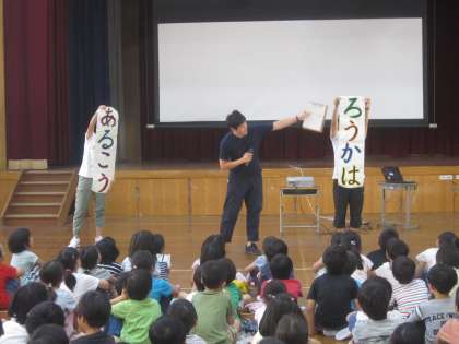 「6月のきまり」は,「ろうかは あるこう」です。先生たちの寸劇でわかりやすく学ぶことができました。当たり前のことを一生懸命に取り組む子どもたちに育ってほしいと願っています。