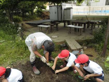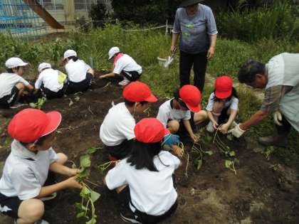 6月4日,地域の方にお世話になり,さつまいもを植えました。