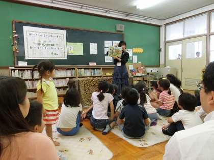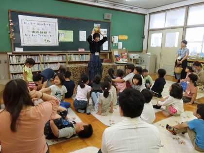 保護者ボランティアの方の読み聞かせがとっても上手で,子どもたちはお話に吸い込まれるように聞き入っている様子でした。