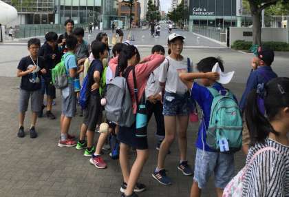 そばにある公園の木陰で昼食をいただいた後,科学館をグループで探索しました。