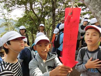 こちらから全員で「ヤッホー!」と呼びかけると、無線を通じて聞こえたと合図をいただきました。山の家の所員さんからも「ヤッホー!」と呼掛けがありました。およそ5秒くらい遅れて声が届くことがわかりました。
