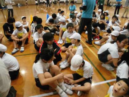 支部育成学級合同での「なかよし運動会」に向けて,第2回の事前交流会が行われました。今回は育成学級のメンバーだけではなく,交流校の下鴨小学校の子ども達とも触れあい,一緒にお話をしたりダンスを踊ったりする時間を設けました。たくさんの友達の中でドキドキしたり,優しい言葉に感激したり,新しい友達ができたりと,たくさんの刺激を受けたようです。本番がまた素敵な交流になるように準備を進めていきたいと思います。