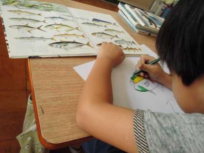 よく見て描く。対象をよ〜く見て描く活動をしました。繰り返し行っていく中で,自分で構成のずれに気付くことが出来るようになったり,バランスを意識して描こうとする姿が見られるようになってきました。