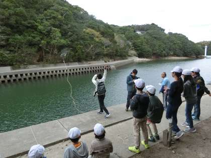 朝食後、かご漁の仕掛けをしました。各班のかごにオキアミを仕掛け、たくさんの魚が入っていることを願い、深谷水道に投げ入れました。