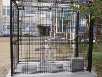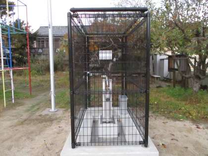 災害発生時には,プール前にあるマンホールのふたを開け,その上部に簡易な囲いを設置し,非常用トイレとして使用します。避難場所となっている本校にとっては,とても安心できる施設ができました。