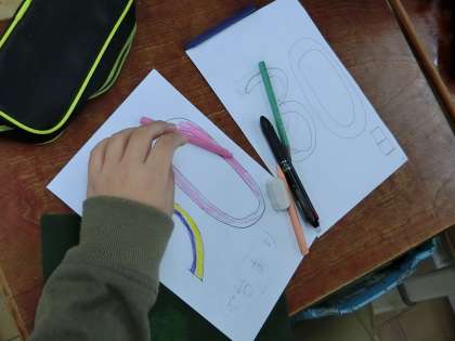 教室では画用紙に数字を書いていました。よく見ると,カウントダウンの数字のようです。