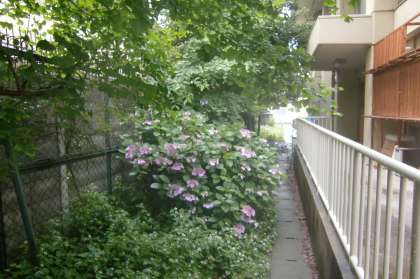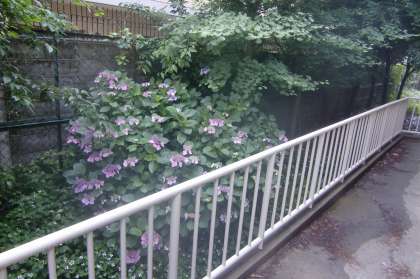 体育館の裏(西側)は安全上の理由から子どもたちが立ち入ってはいけない地域になっています。今,そこにガクアジサイが咲いています。人気(ひとけ)のない所で雨に濡れながら咲いている花の写真をアップしました。