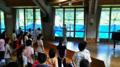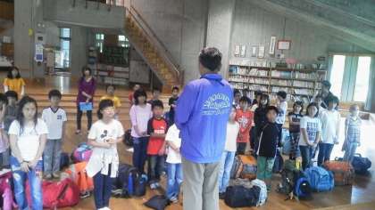 山の家に到着しました。ここも蒸し暑いです。入所式を行いました。みんな真剣な顔でのぞんでいます。心配したお天気も、大丈夫のようで、これからの活動が楽しみです。