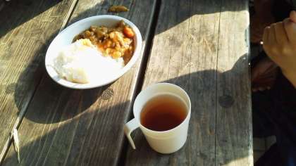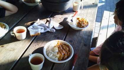 スープカレーにならないように、気合いを入れてつくりました。日は長いのでゆっくり作ればよいと言っていますが、子どもたちはとても手際よくつくりました。トロトロのおいしそうなカレーができあがりました。