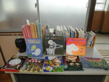 知っているようでよくわからないおばけ。みんなでいろいろ調べてみようと,おばけにまつわる本をみんなで図書室で探し,教室に”おばけの本コーナー”ができました。みんなで色々読んでいきながら”おばけって何だろう?”と考えてみたいと思います。