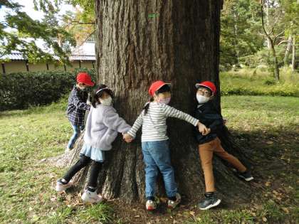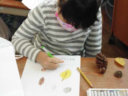 御所に行ってきました。ころころ丸いどんぐりや,色とりどりの葉っぱを袋に詰めて帰ってきました。これらの木の実や葉を使って,作るものを話し合って決めていこうと思います。もちろんあさがおリースにも使います。楽しみです。