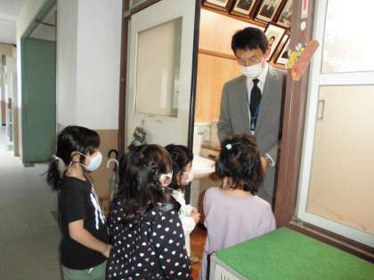 給食を残さず食べるぞ!!と続けたペロリん集め。10枚たまり大ペロリんを校長先生から頂きました。みんなうきうきそわそわ校長室に向かう姿がありました。