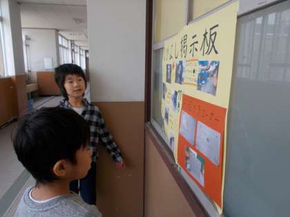 廊下を通る子供たちも足を止めて、見てくれる機会が増えてきました。