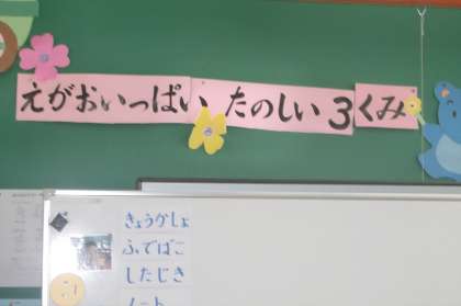 3組の学級目標は,『えがおいっぱいたのしい3くみ』です。一人の学級なので交流の時以外は,担任の先生と二人で学習しています。