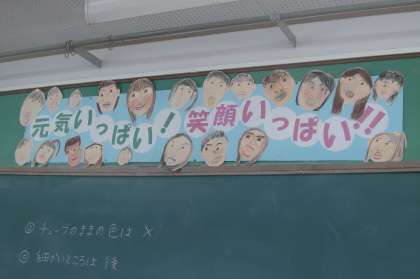 4年2組の教室に掲示してある『元気いっぱい! 笑顔いっぱい!!』は4年生の学年目標ですね。
