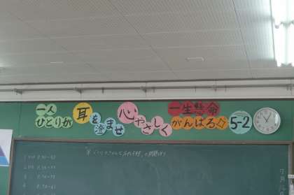 5年2組の学級目標は,『一人ひとりが耳を澄ませ心やさしく一生懸命がんばる5−2』です。