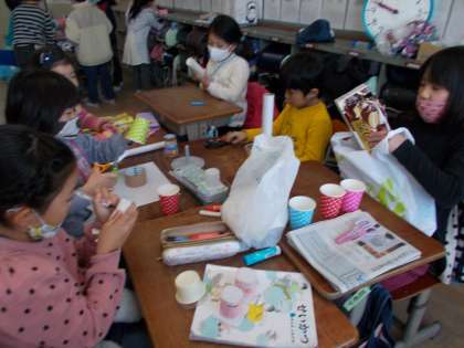 生活の学習では、子ども達が家から持ってきたいらなくなった空き箱を使って、みんなが楽しめる物を作る学習に入りました。子どもたちはそれぞれボーリングや楽器、おもちゃなどを作っていました。