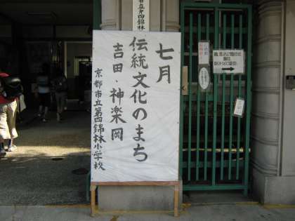 第29回吉田区民夏まつりが,7月25日(土)午後4時から8時まで,第四錦林小学校行われます。アトラクションでは,近衛中学校ブラスバンド,吉田児童館学童クラブの踊り,京都精華学園吹奏楽部,吉田民生児童委員協議会の手話,吉田女性会の盆踊りなど多数の参加があります。そして,この地域に伝わる伝統文化の剣鉾,和太鼓も参加します。地域の皆様から教わったこれらの技能を,部活動の子どもたちが思い存分披露してくれることを願っています。