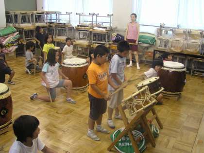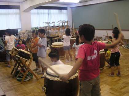 毎週水曜日,放課後,和太鼓部の練習があります。発表の場は,吉田神社のお祭りや夏祭り,よしだ学園のオータムフェスティバルなどたくさんあります。地域の今宮太鼓会の方に指導をしていただいています。