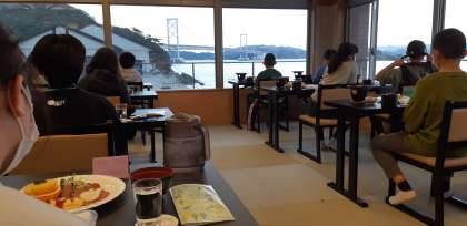 鳴門海峡の壮大な景色を眺めながら朝食をいただきました。もりもり食べていたので体調は万全のようです。