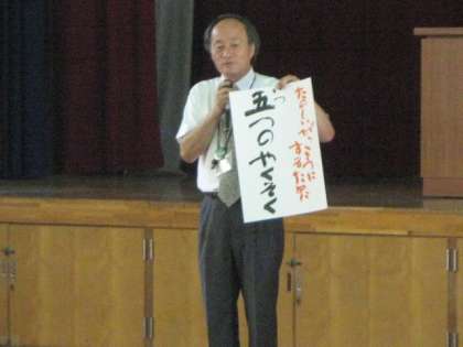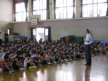 長い夏休みが終わり、子どもたちは互いに笑顔で再会を喜んでいる様子でした。夏休み明け初めての朝会では、校長から夏休み前のめあてと今年度最初の「5つのやくそく」についての振り返り、約束の意味などについてのお話がありました。「みんなが気持ちよく過ごすため」にも常に心がけさせていきたいと思います。また、夏休みの水泳記録会で入賞した6年生の女子チームの表彰と新しく転入してきた子どもたちの紹介がありました。