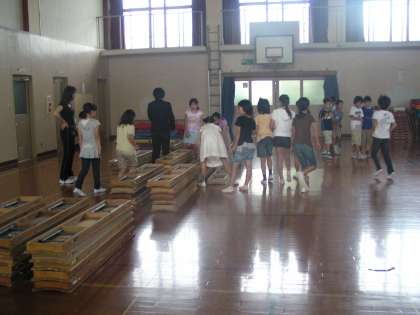 本日,7月6日は,支部(支部以外も少し)公開授業研究会があります。20名ほどの参加ということで,授業や,その後の研究会も体育館ですることになりました。そのために,中間休みに体育館の椅子並べ等会場設営をしています。担任の方から声をかけてやっていますが,活動をしているときに,気がついて,手伝う全校児童の姿が,増えていくとよりよい学校になっていくと思います。
