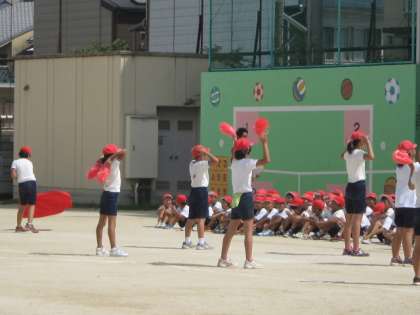 1・2時間目、厳しい暑さの中、運動会全校練習をしました。開会式・閉会式・地域交流種目の練習の後、各色に分かれて応援の練習をしました。応援団は、6年生を一生懸命盛り上げる5年生の姿が見られました。高学年として運動会当日もがんばっていきます!