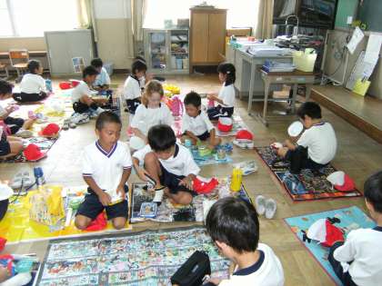 みんなにとってはお弁当の時間も楽しみでした。仲良く敷物をひいて,おうちの方の心もこもったかわいいお弁当をいただきました。
