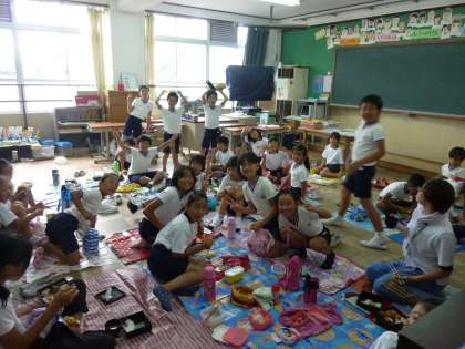 お昼はみんなでシートを広げて,楽しくおいしく,お弁当をいただきました。