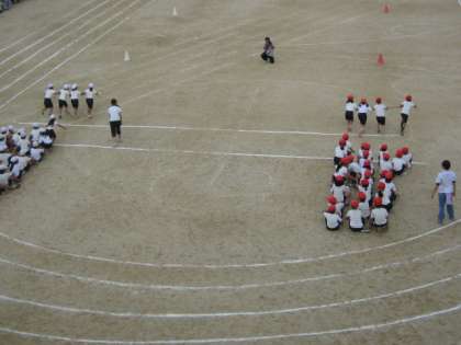 3年生は80m走,チャレンジ走,四錦タイフーン(台風の目)そして,4年生と一緒に竹取物語(棒引き)の4種目に出場しました。