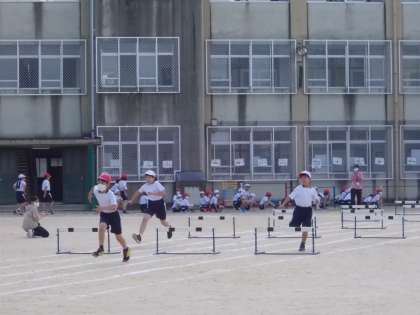 4年生は,80m走,ハードル走,ソーラン節を行いました。