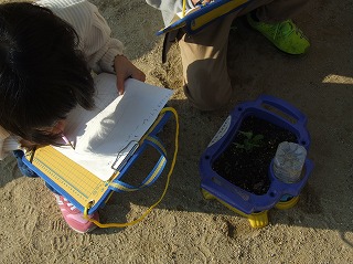 レナンキュラスやスイートピーは芽がでていました。冬をこえてきれいな花を咲かせようと毎日お世話をがんばります。