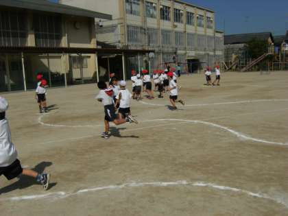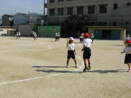 前回の「じんとりあそび」のバージョンアップで,ジグザグのコースで学習しました。カーブで勢いあまってコースを踏み外す児童もいましたが,しっかりコースを守って走ることができました。また,どのチームも勝ち負けを素直に認め,仲良く学習できました。