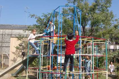 低学年用のジャングルジムで遊んでいるのは1年生。見ていても,かつてのような危なっかしさはなくなってきました。成長の速さを感じます。