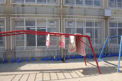 3枚目の写真は4時間目のうんていです。保健室の毛布を日に当てています。なにせ『小春日和』ですから…。