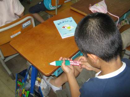 今日は水曜日。毎週水曜日の中間休みは,「おはなし わくわく」があります。いつもおもしろいお話を教育ボランティアの方々が用意して下さるので,子どもたちは楽しみにしています。今日は,夏休み前最後の日ということで,ひとりひとつずつの手作りの素敵なプレゼントが用意されていました。あいにくプール学習の着替えなどでわくわくルームに来れなかった子どもたちにも渡して下さいと担任まで届けてくださったので,教室でみんなにプレゼントを渡すと・・・「やったあ!!だいきちや!」と歓声が起こりました。そうです。おみくじが入っていたのです。「きみのゆめがかなうよ」などと書いてあるのを読んでいろいろなことに輝かせている目をいっそう輝かせていました。