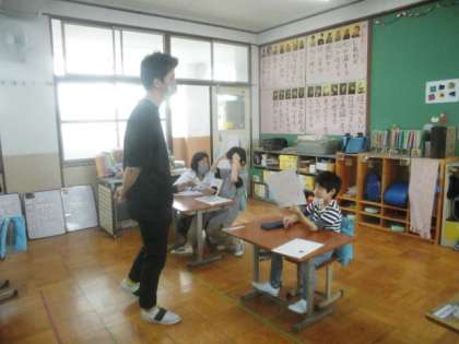 「先生の好きな色はなんですか」「すきな絵本はなんですか」などたくさん質問をして,それぞれの先生のことを知ることができています。
