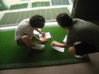 教室をでて,学校内のさまざまな場所をこすりだしました。どんな形がでてくるのかわくわくした表情が見られました。