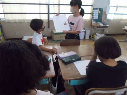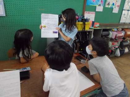 友達の発表しているものに対して,じっくり見る姿や「あ〜」という相槌をうつ姿がありました。