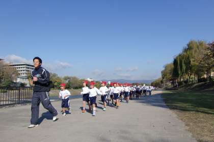 さすがに空気は冷たいのですが,日差しがあって気持ちよさは最高でした。スタート地点で簡単な説明を聞き,準備体操です。子どもたちの元気な掛け声にたまたま散策中の市民の方々はやさしく微笑んでくださいました。