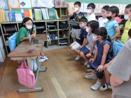 1・2年生が見に来ることもあり、子どもたちは始め緊張していましたが、発表する度に慣れた口調になっていき、スラスラ発表することができました。4年生の子どもたちは1・2年生がとても真剣に聞いてくれていたり、感想や質問を言ってくれたりして嬉しかったと言っていました。発表を聞いている時に4年生は1・2年生が見やすいように場所を譲ってあげていました。年上のお兄さんお姉さんとして思いやりの心が育っていることが分かり、とても温かい気持ちになりました。