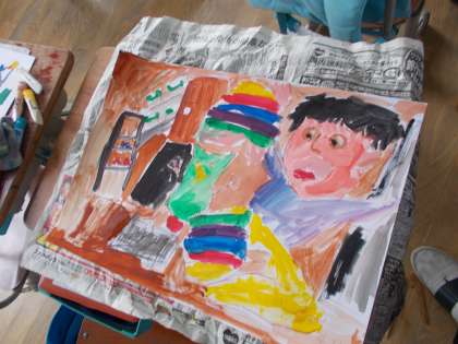 図工の「言葉から形、色」の学習を取り組んでいます。この学習は、作品を挿絵を一切見ないで、想像を膨らまして絵に表現します。
