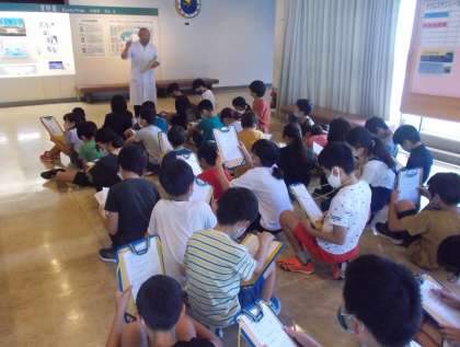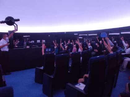 前半は展示学習で,それぞれ興味のある実験講座に参加したり,展示物を見たり触ったりして学習しました。後半はプラネタリウムで,星座や星の動き方について学習しました。