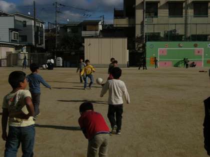 上級生のドッジボールは,何度もこのホームページに取り上げられていますが,1年生は,体育で「ころがしドッジボール」をしただけなので,運動場でドッジボールをあまりしていませんでした。でも,最近,しっかりと自分たちの場所をキープしてドッジボールをする姿が出てきました。パスゲームで,ボールを投げる時に速くて正確なパスができると,より有効であることを身にしみてきたのかもしれません。それにはやっぱり数多く投げないとうまくはなりません。ドッジボールをたくさんしている児童は,パスの仕方やシュートも上手です。