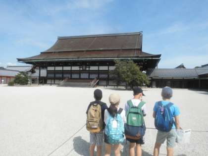 京都御所の中を見学しました。大きな門やきれいなお庭など京都の魅力をたくさん見つけることができました。