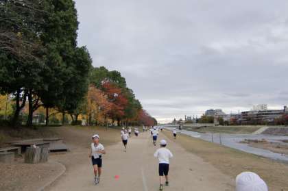 ともあれ,京都を象徴するような川である鴨川の河川敷を走る,しかも,木々の葉は色づき,美しさは最高。他の学校がうらやましがるようなロケーションです。