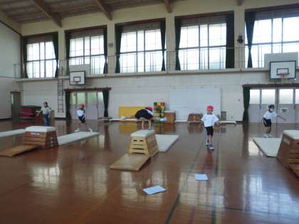 1年生より挑戦する技の難易度が上がり,「できるようになりたい!」と意気込んでいます。お互いに励まし合いながら,様々な技に挑戦していました。