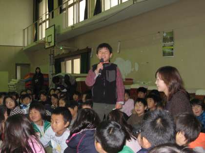 1・2時間目にふれあい集会がありました。校長先生による「おこだでませんように」の読み聞かせをしてもらいました。事前学習で1度読んでいる絵本だったのですが,子どもたちは校長先生の読み方に食い入るようにして聞いていました。